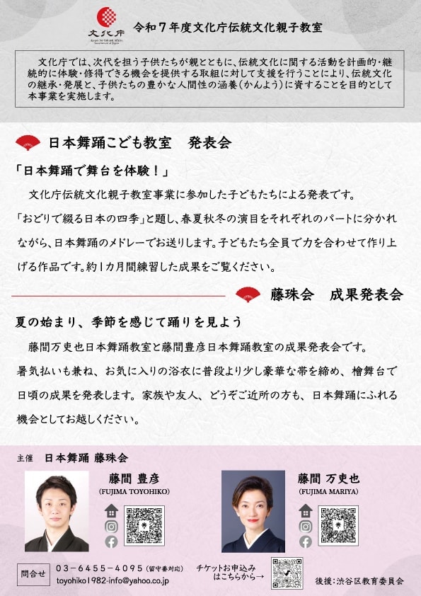 | <主催> | 公益社団法人日本舞踊協会 東京都|公益財団法人東京都歴史文化財団|江戸東京伝統芸能祭実行委員会 |